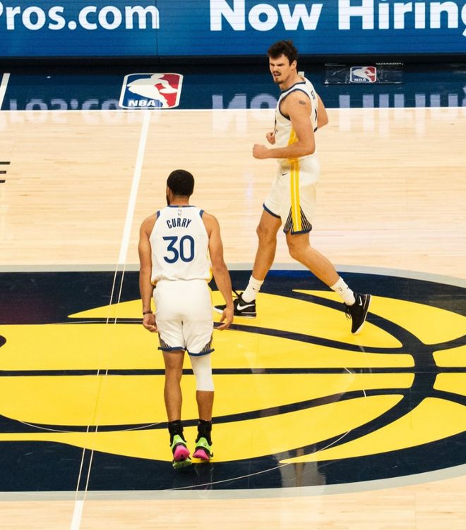 第二节两队的轮换阵容登场两队进攻效率明显下降,库里个人的表现比首节要好5中3+三分3中1拿到8分2助攻1抢断,这一节库里效率更高,半场库里已经拿到18分,被下放替补的波斯特表现不佳,科尔重启这套五小阵容很明显是觉得这支残阵步行者硬实力不济。