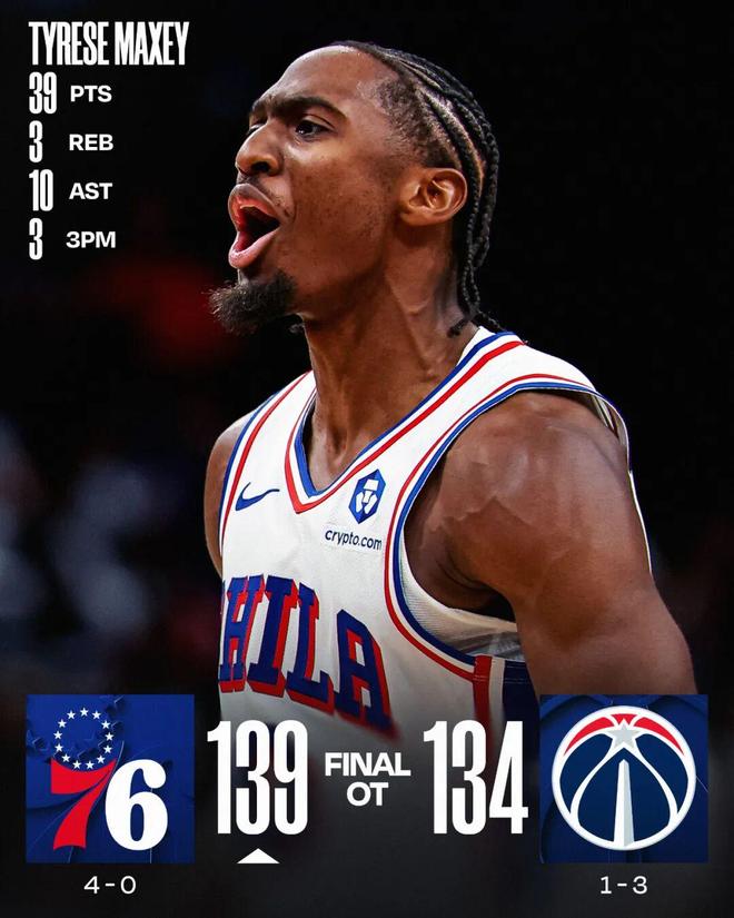 当然了,现在也才4场比赛,而且说实话,76人的4个对手强度都不大,但无论如何,能在开局打出如此炸裂的表现,马克西都值得称赞,如果能保持下去——哪怕不是场均37.5分8.3助攻这种炸裂数据、而是30分+8助攻水平,马克西今年都有希望冲一下MVP,这,应该是所有球迷开赛前都始料未及的。